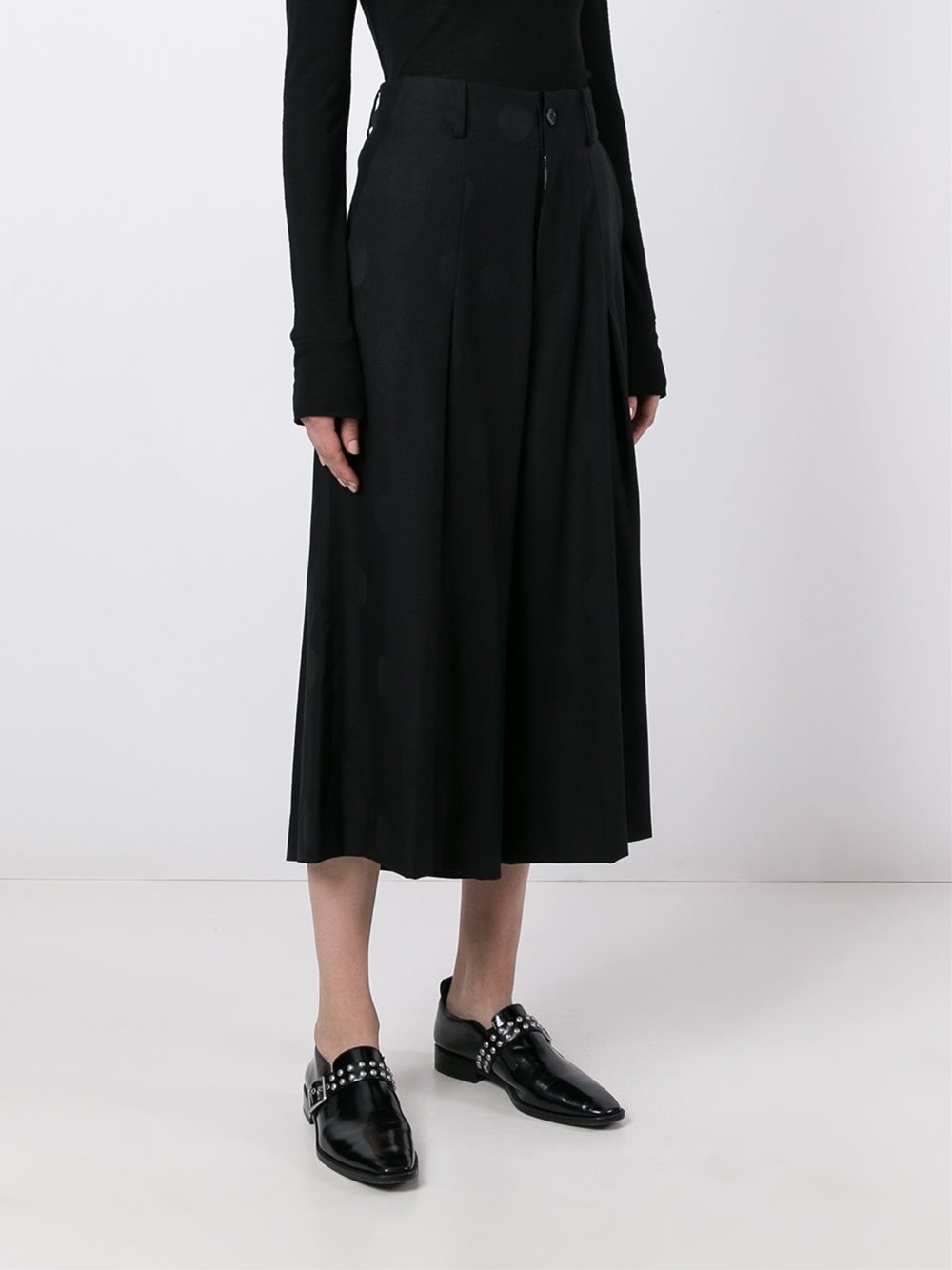 Y's 黑色 羊毛 宽腿裙裤。