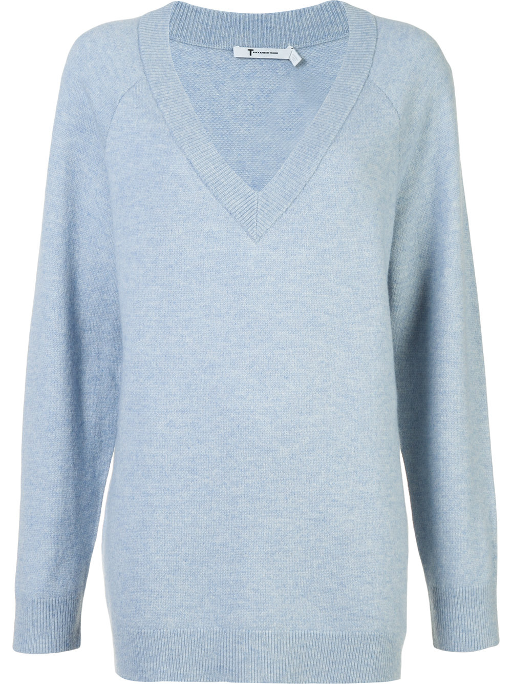 T By Alexander Wang Long-Sleeve Striped Tee, Ink/Ivory