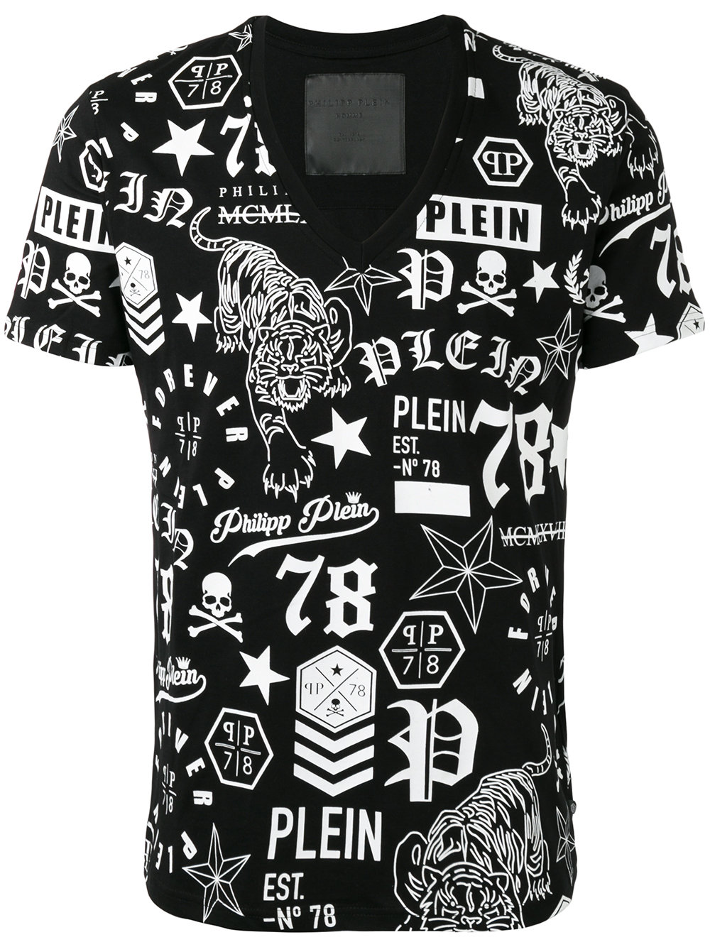 Philipp Plein logo印花v领T恤