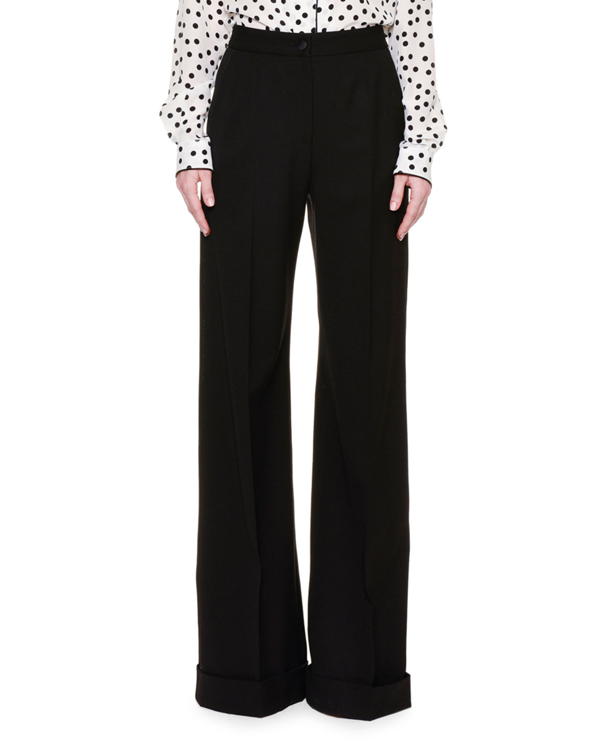 Dolce & Gabbana Wide-Leg Folded-Cuff Pants, Black