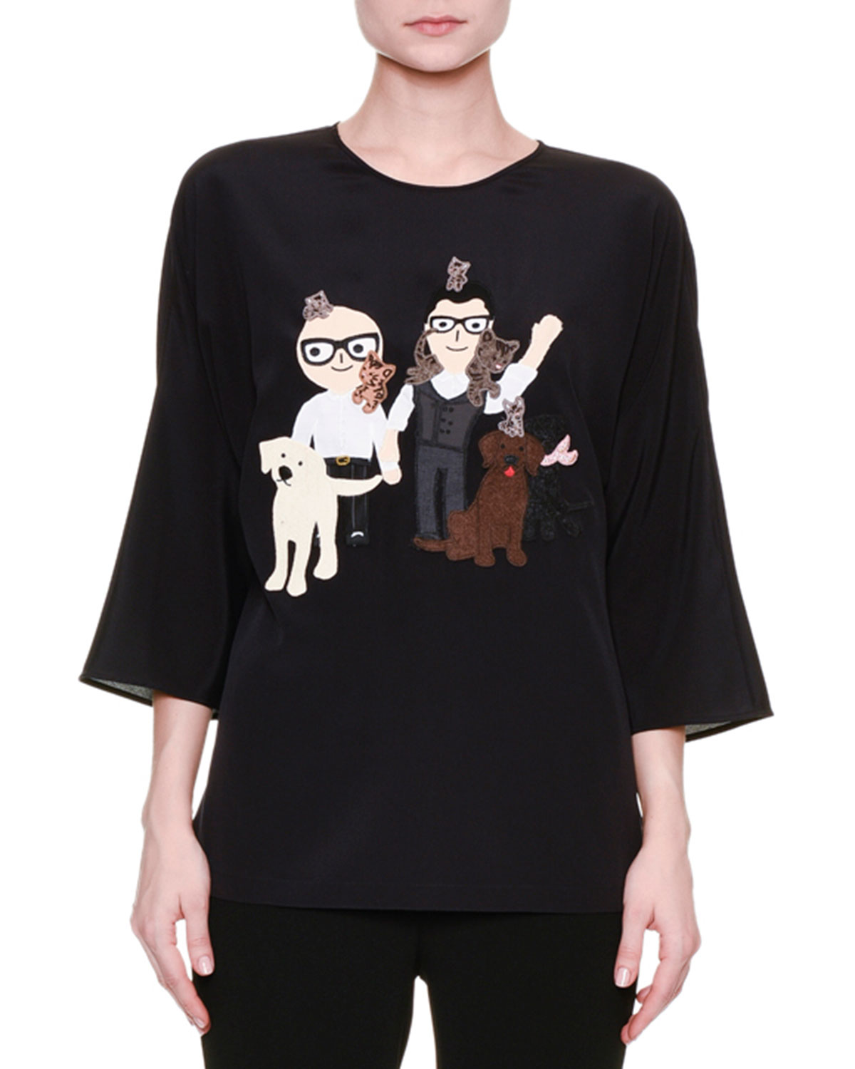 Dolce & Gabbana Dog & Cat Graphic-Print Blouse, Black