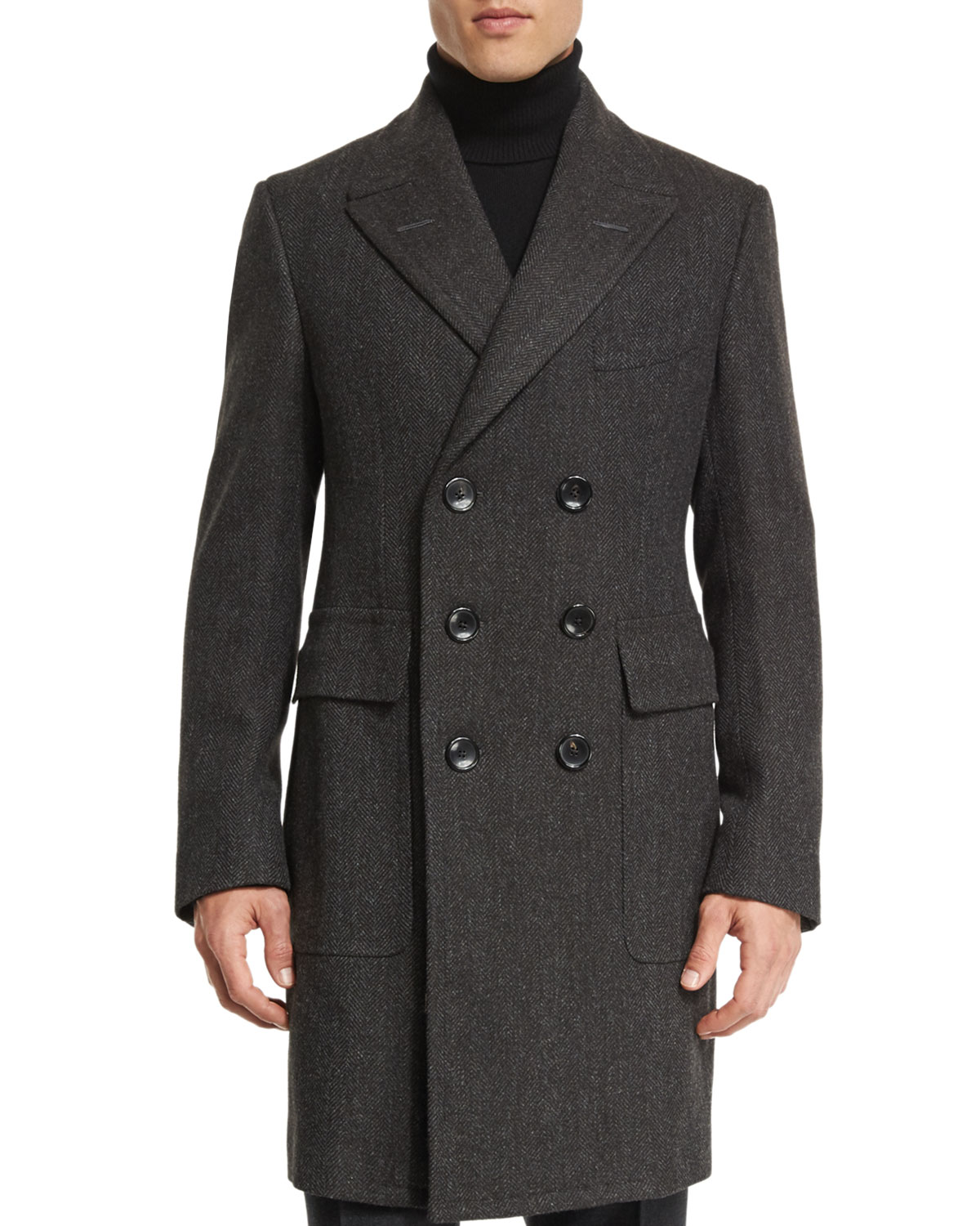 Tom Ford Classic Herringbone Double-Breasted Tailored Coat