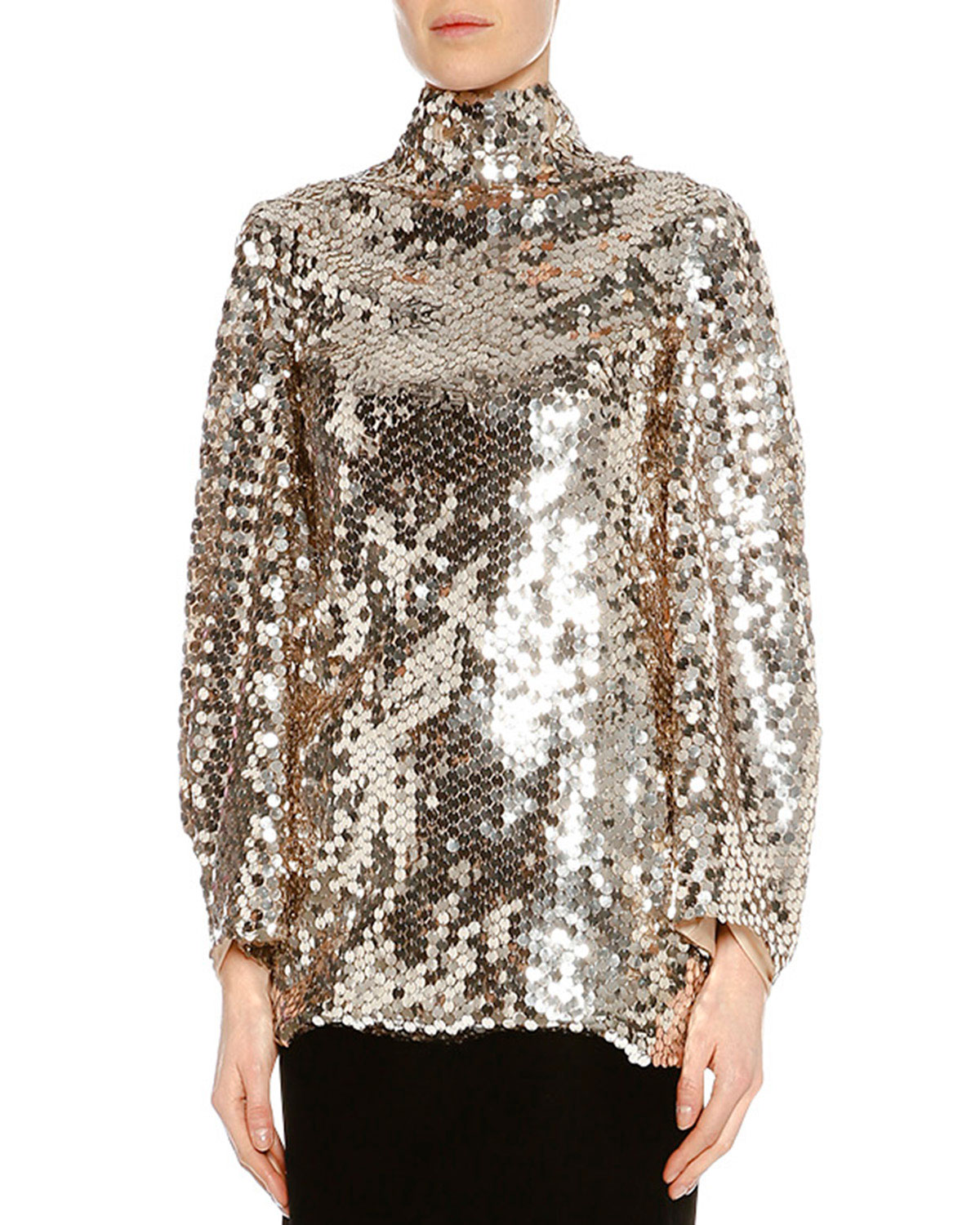 Tom Ford Sequined Open-Back Tunic, Light Silver