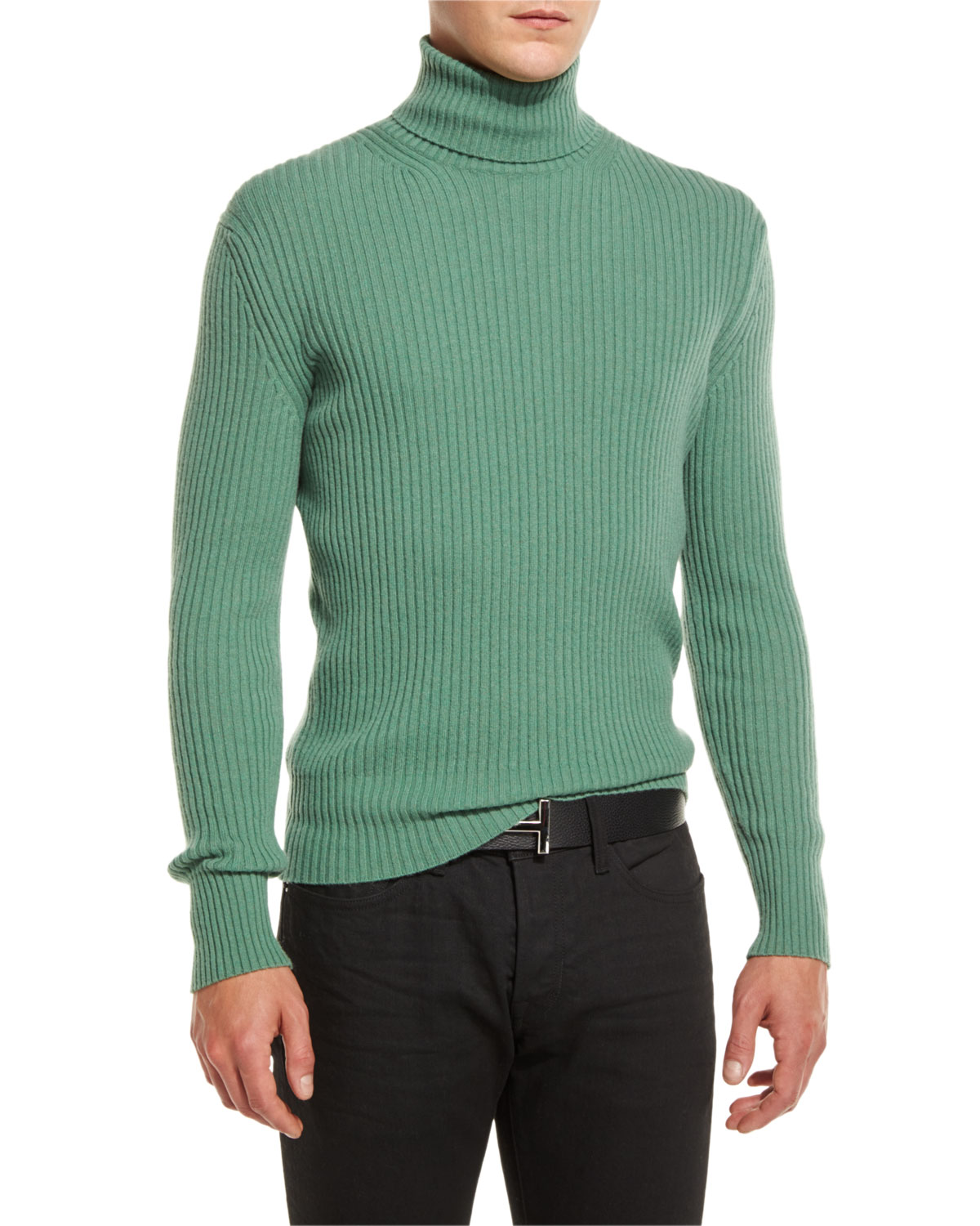 Tom Ford Ribbed Turtleneck Sweater, Green