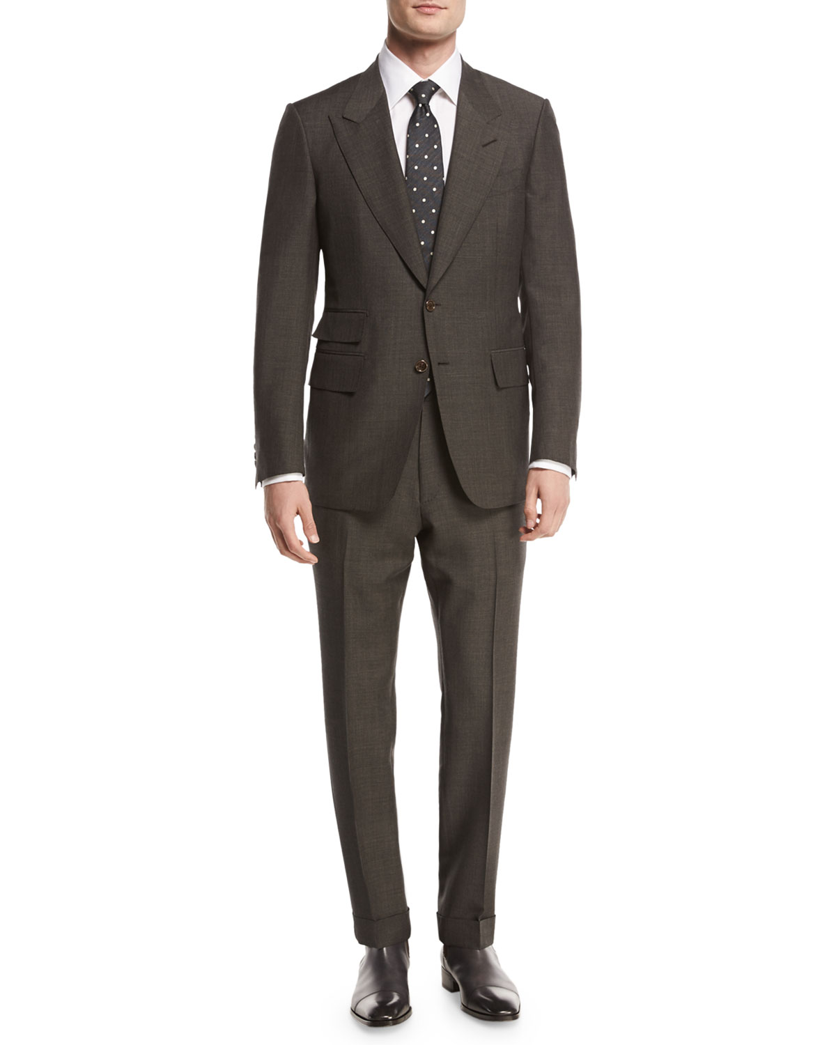 Tom Ford Shelton Base Mohair Peak-Lapel Two-Piece Suit, Brown