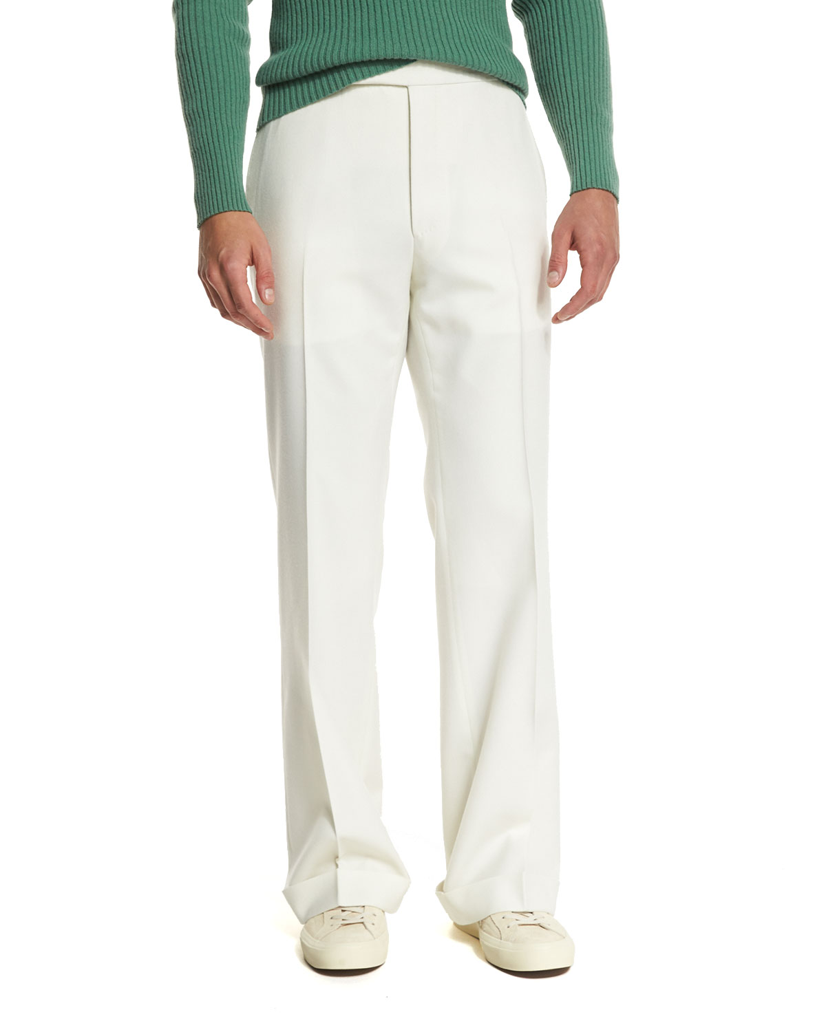 Tom Ford Solid Flat-Front Wool Trousers, Ivory
