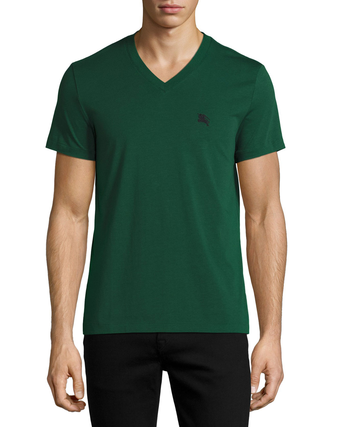 Burberry Lindon Jersey V-Neck T-Shirt, Green